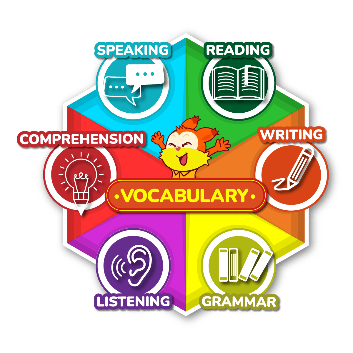 We’ve enhanced this with animated vocabulary cards that use fun action sequences to illustrate each word, making meanings clear. Our method progresses from single words to phrases, sentences, and longer texts, building a strong vocabulary base. (With this strong vocabulary base, can master all other language skills)