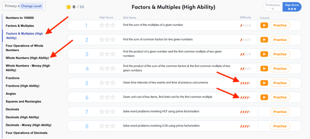Under KooTraining> Mission, you can search for skills marked with ‘(High Ability)’ for more difficult questions.